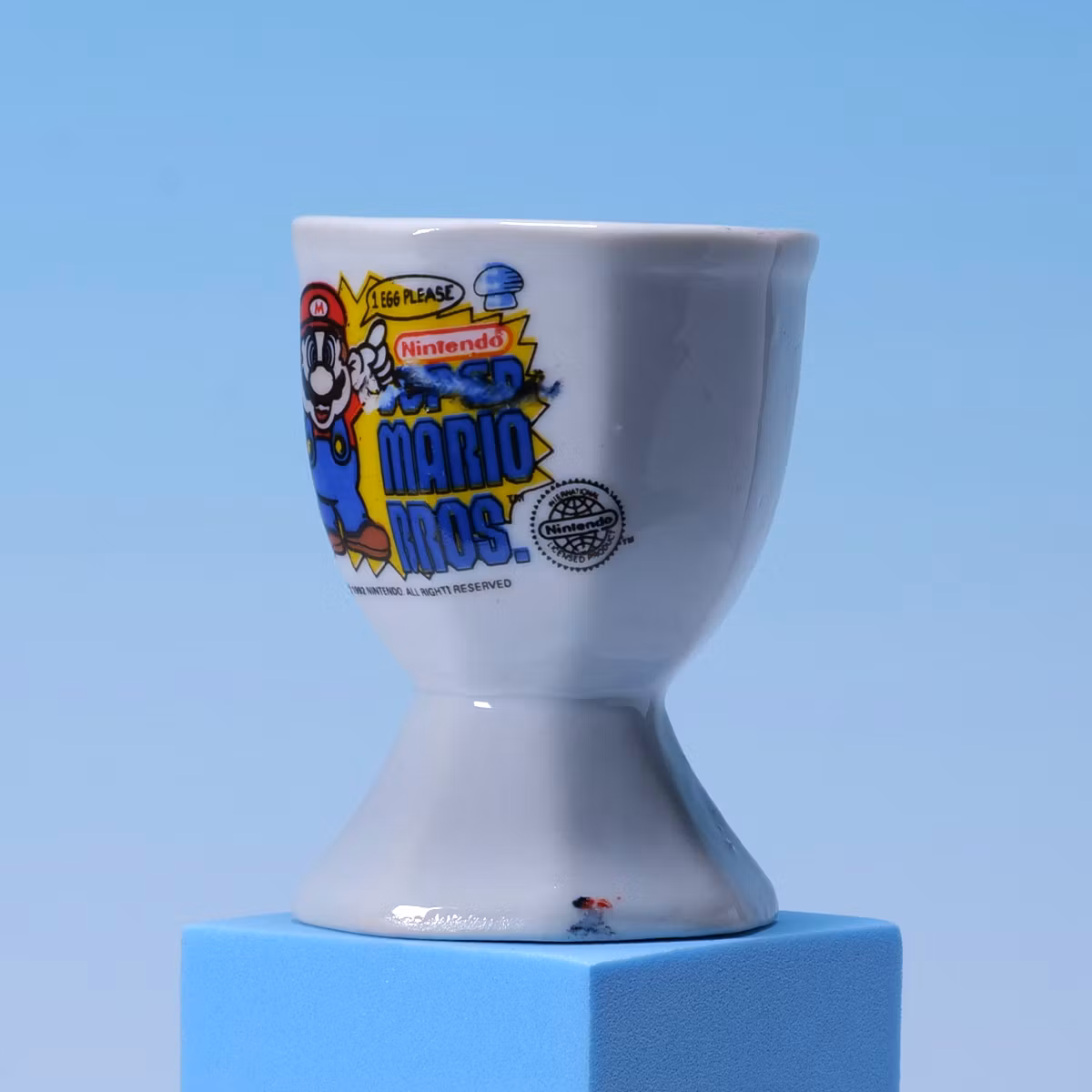 En Nintendo-äggkopp från 1992… Ett jävla statement! 🍄🥚 “1 EGG PLEASE” och Mario på plats, det blir inte mer ikoniskt än så här. Printen är lite off (måndagsexemplar vibes), men det gör den bara mer unik och levande. Det här är exakt den typen av udda vintage Nintendo-merch som folk slåss om.