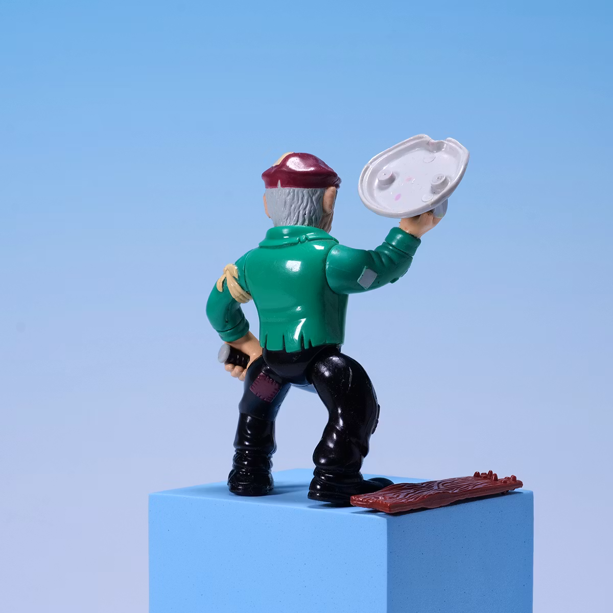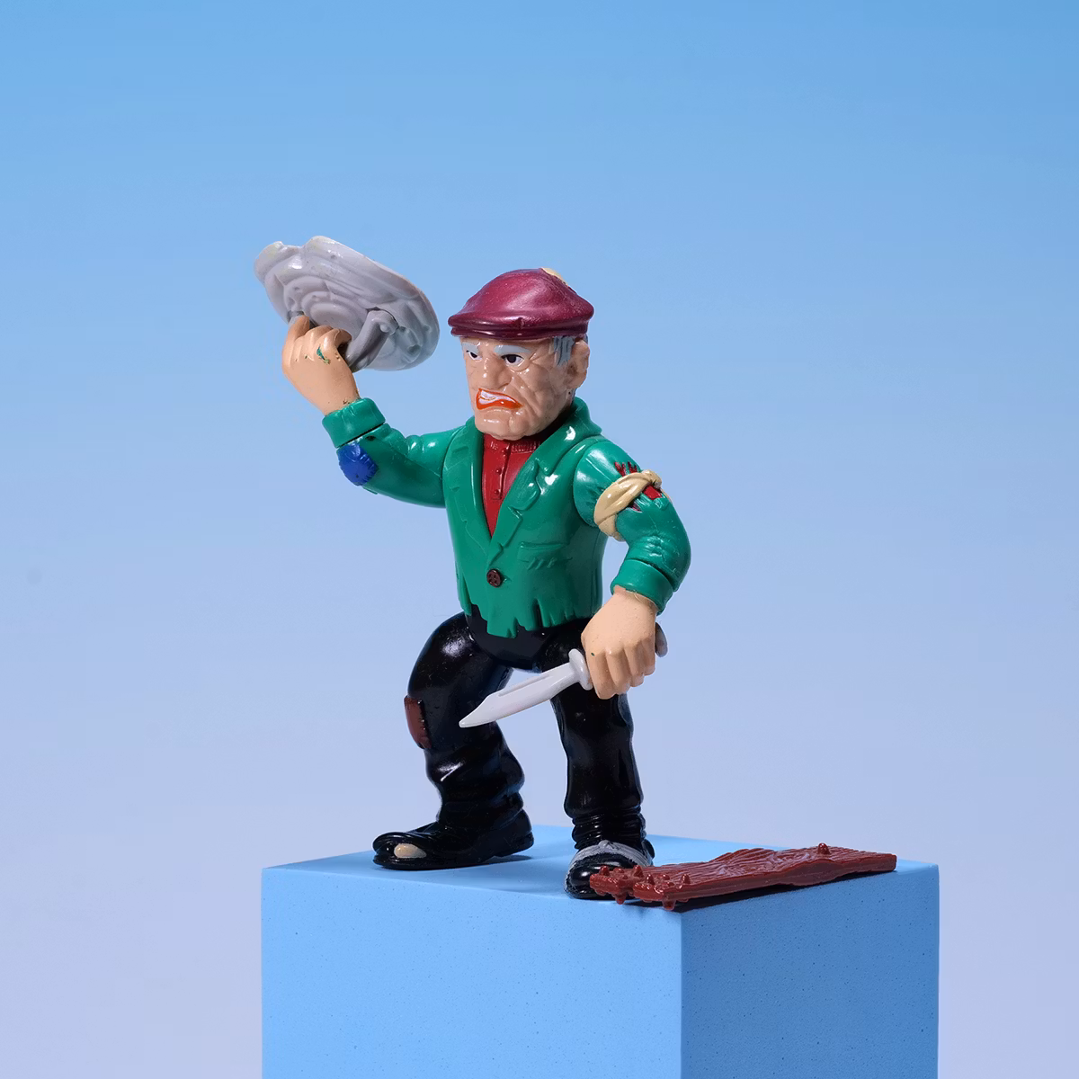 Steve the Tramp är en utsliten boxare som blivit en brutal buse. 🥊 Han driver runt stadens hemlösa barn och tvingar dem jobba åt honom. En riktigt rutten typ alltså. Figuren är komplett och har exakt den där överdrivna Dick Tracy-designen som gör serien så charmigt skev. Dessutom funkar han perfekt i samma värld som dina TMNT-figurer.