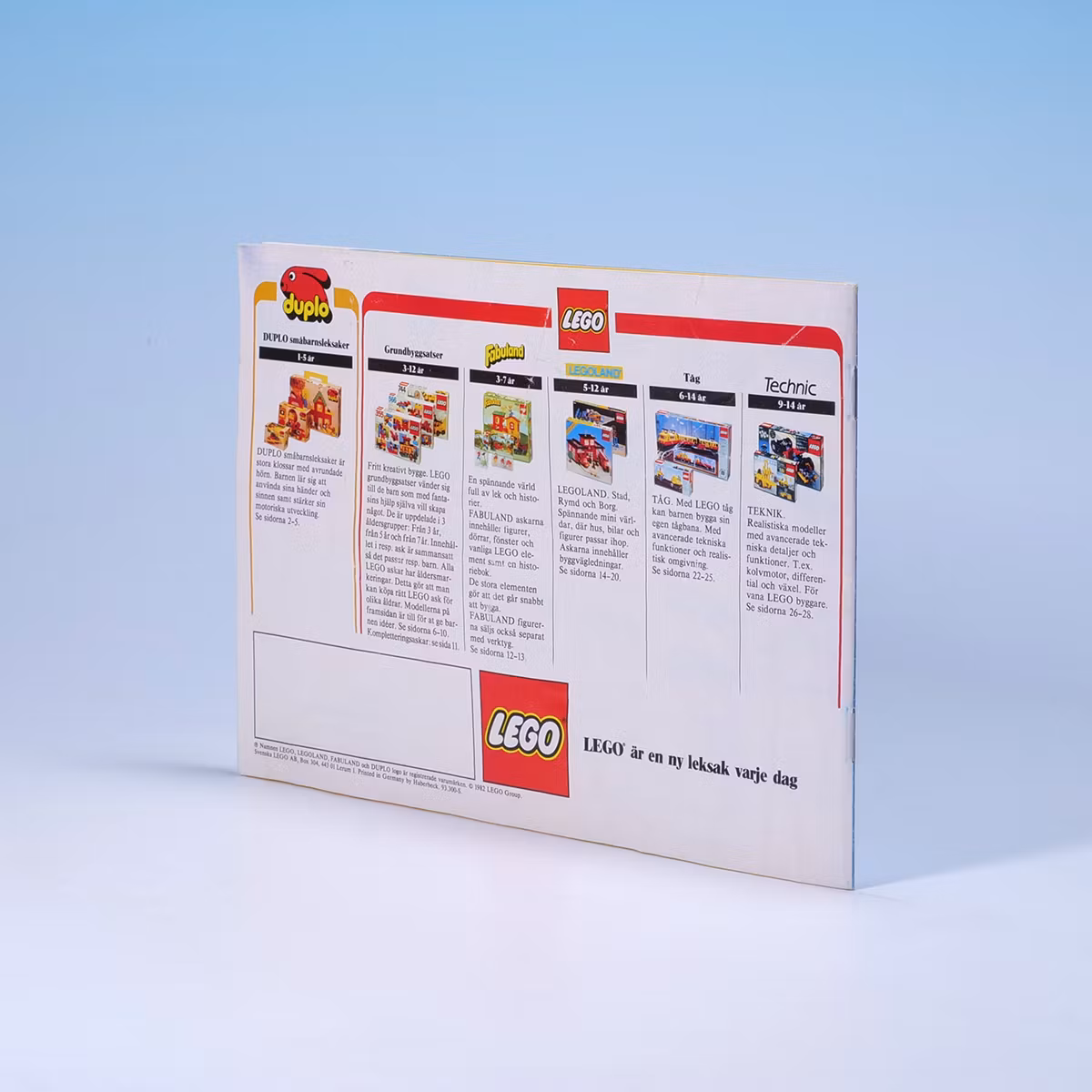 Ren LEGO-porr. đđ§± Svensk katalog frĂ„n 1982 i fint skick med bara lite vik i slutet. Full av drömmar, byggen och plastambitioner. En sjĂ€lvklar hyllbok.