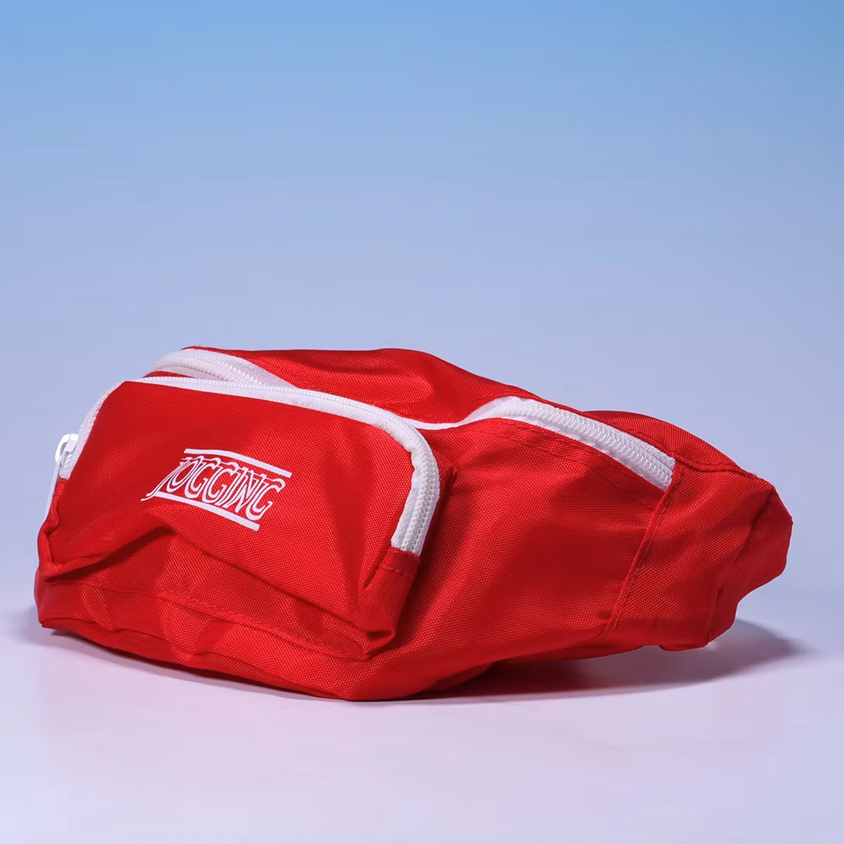 Röd, enkel och jävligt rätt. 🏃🎒 Vit text, vita dragkedjor och ett budskap som är lika rakt som designen. Den här är liten, smidig och full av gammal gympasals-energi. Minimalism innan det blev trendigt.