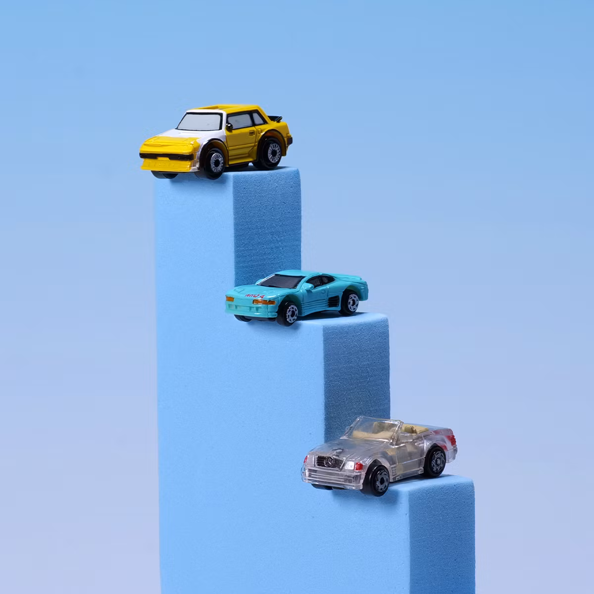 Tre minibilar med maxad attityyyyd! đđ„Gul Toyota MR2, turkos Nissan MID-4 och en genomskinlig Mercedes 300SL frĂ„n X-Ray-serien. SmĂ„ som fan, coola som helvete och i fint skick. Det hĂ€r Ă€r exakt varför Micro Machines regerade. Den gula Toyotan Ă€r dessutom en "Private Eyes"-bil, vilket gör att man kan titta i toppen av den och se hur det ser ut pĂ„ insidan! Se bild 3!