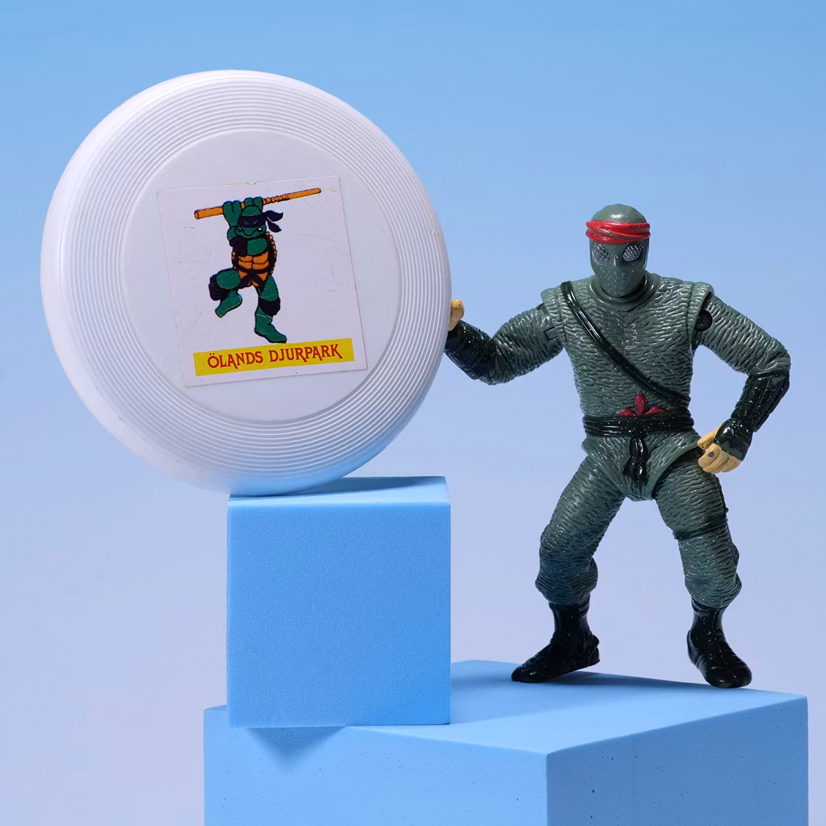 Den är ful. Den är fantastisk. 🐢🥏 En kackigt tecknad Donatello som marknadsför Ölands Djurpark. Det är exakt så konstigt som det låter. Fint skick, men skitful på det där sättet man inte kan sluta älska. Ren svensk turistestetik gone wrong. Har noll koll på varför denna existerar.