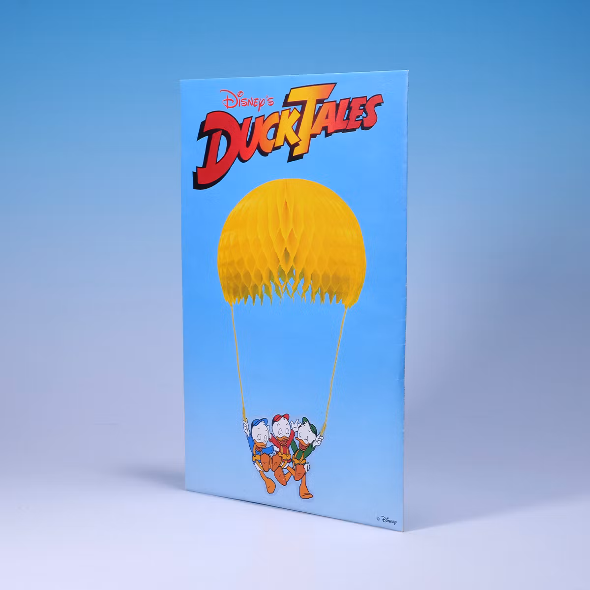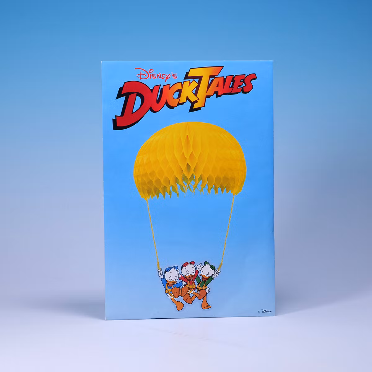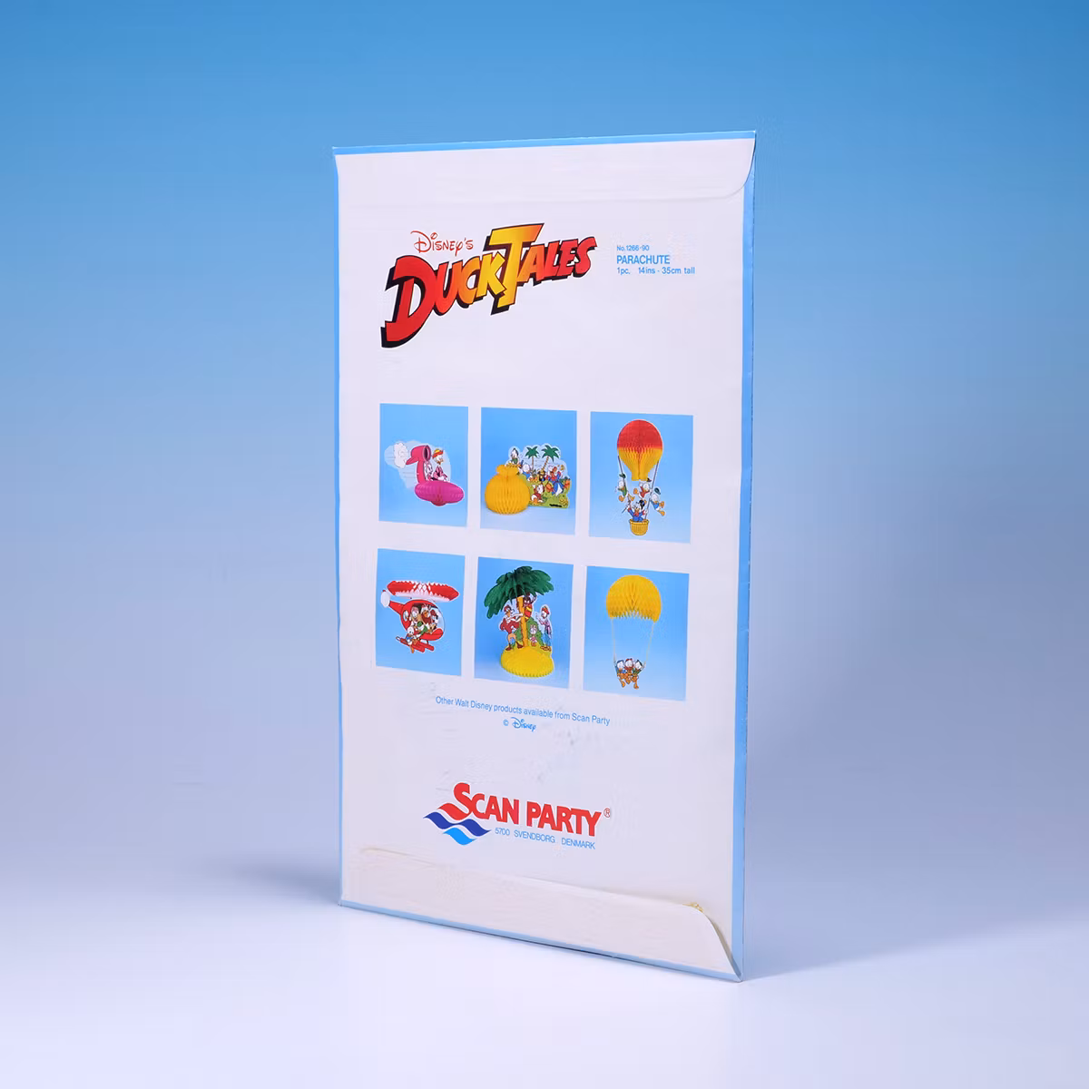 Knatte, Fnatte och Tjatte från ovan! 🪂🦆 Oöppnad pappdekoration som fångar exakt den där festkänslan från 90-talet. Färgerna poppar och motivet är ren DuckTales-action. Perfekt för vägg, fest eller nostalgichock.