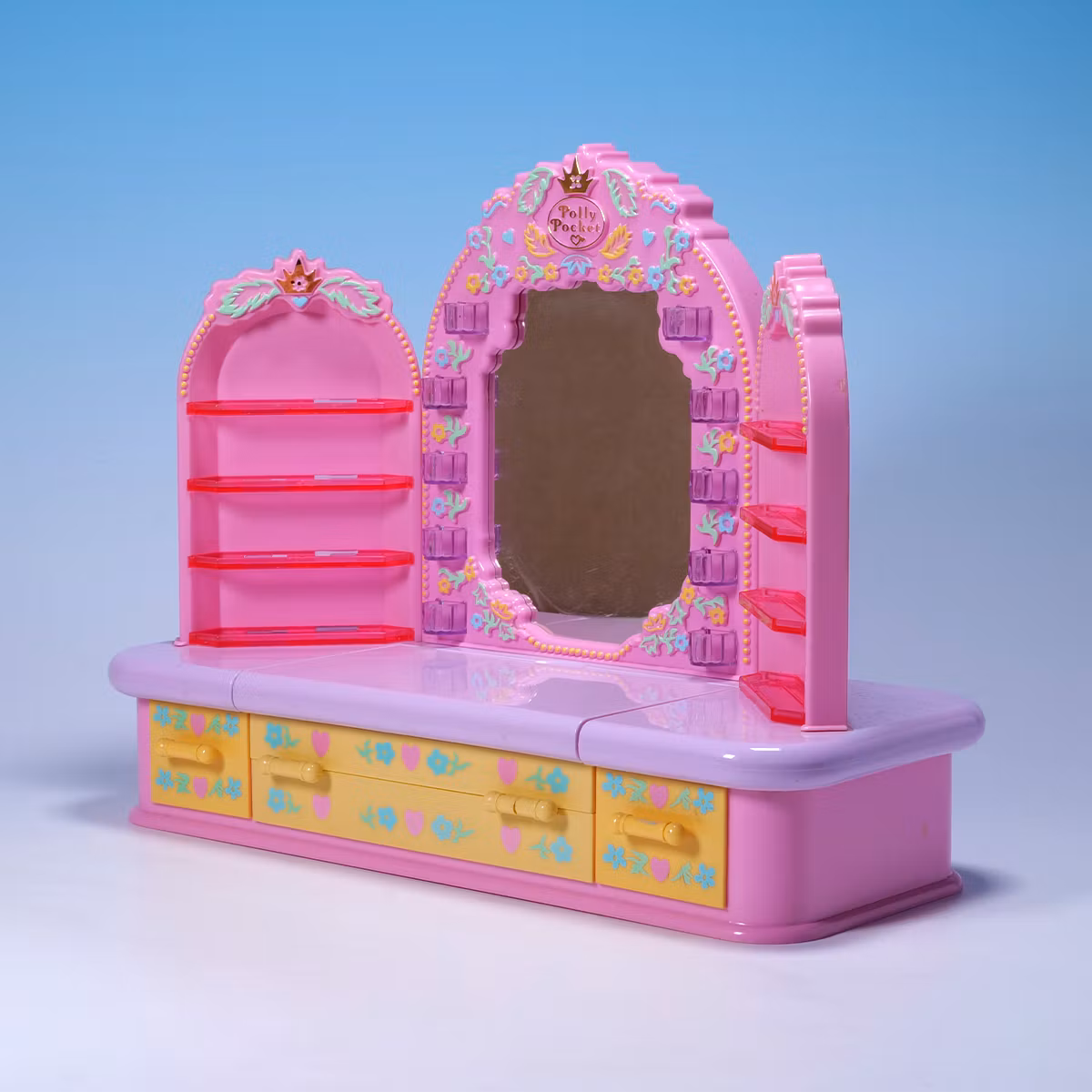En liten sminkstation som öppnar upp till en hel jävla pyjamasfest. 💄🛏️ Inte helt komplett och vissa av figurerna är lite slappa i midjan (same), men det är också exakt så dessa brukar vara efter 30+ år. Spegeln är lite sliten men funkar fortfarande och hela setet har den där mjuka, magiska vintage-känslan. Mysigt, märkligt och fullt av charm.