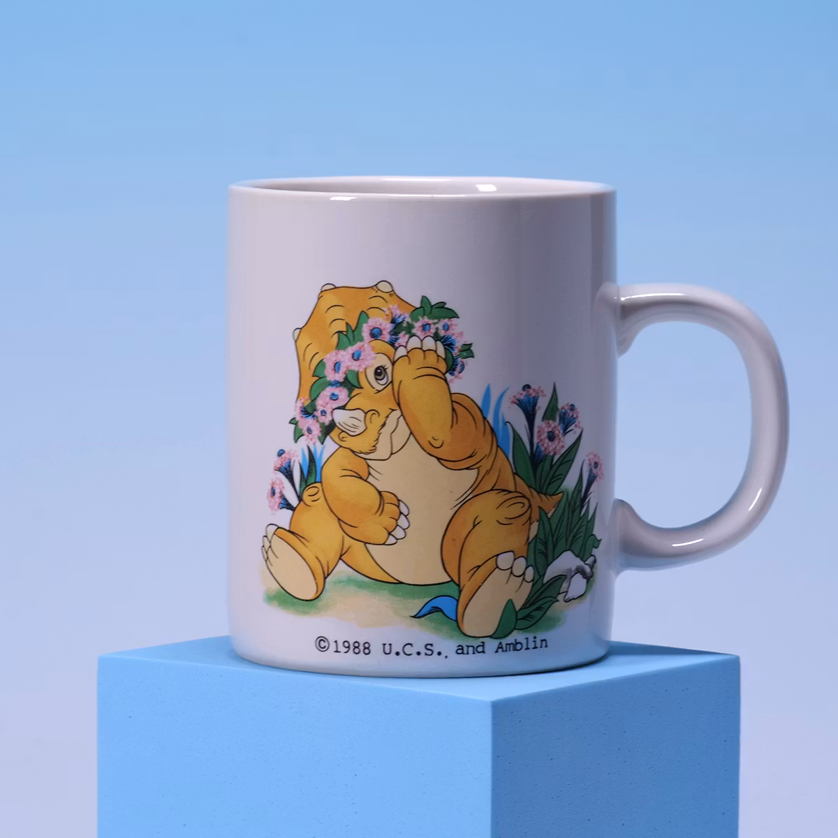 Sorgsen dinosauriefilm, varm dryck. 🦕🌸 Sliten men fin, extremt sällsynt och med svensk logga. Cera med blommor gör allt bättre, även morgonkaffet. En riktig känslomugg.